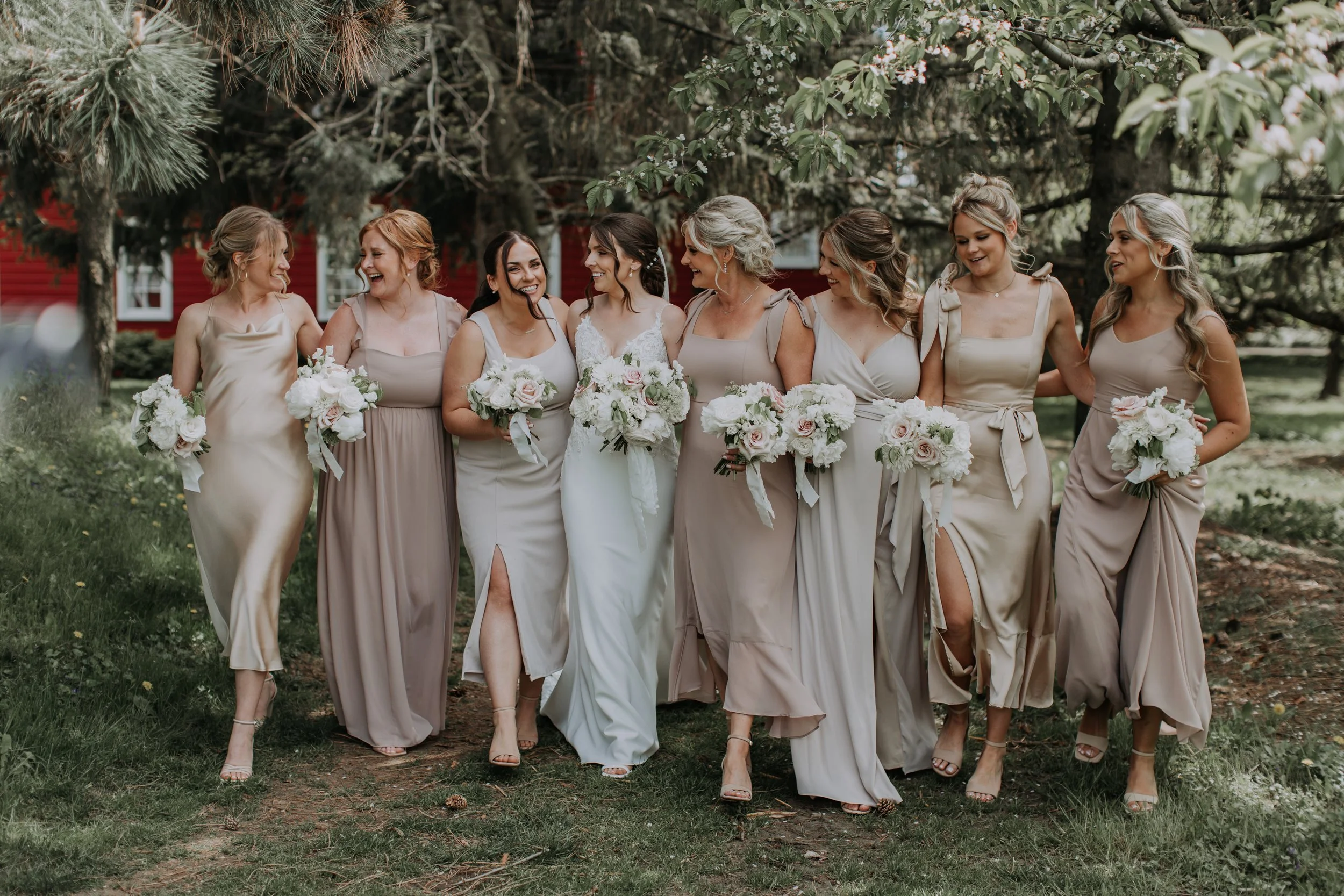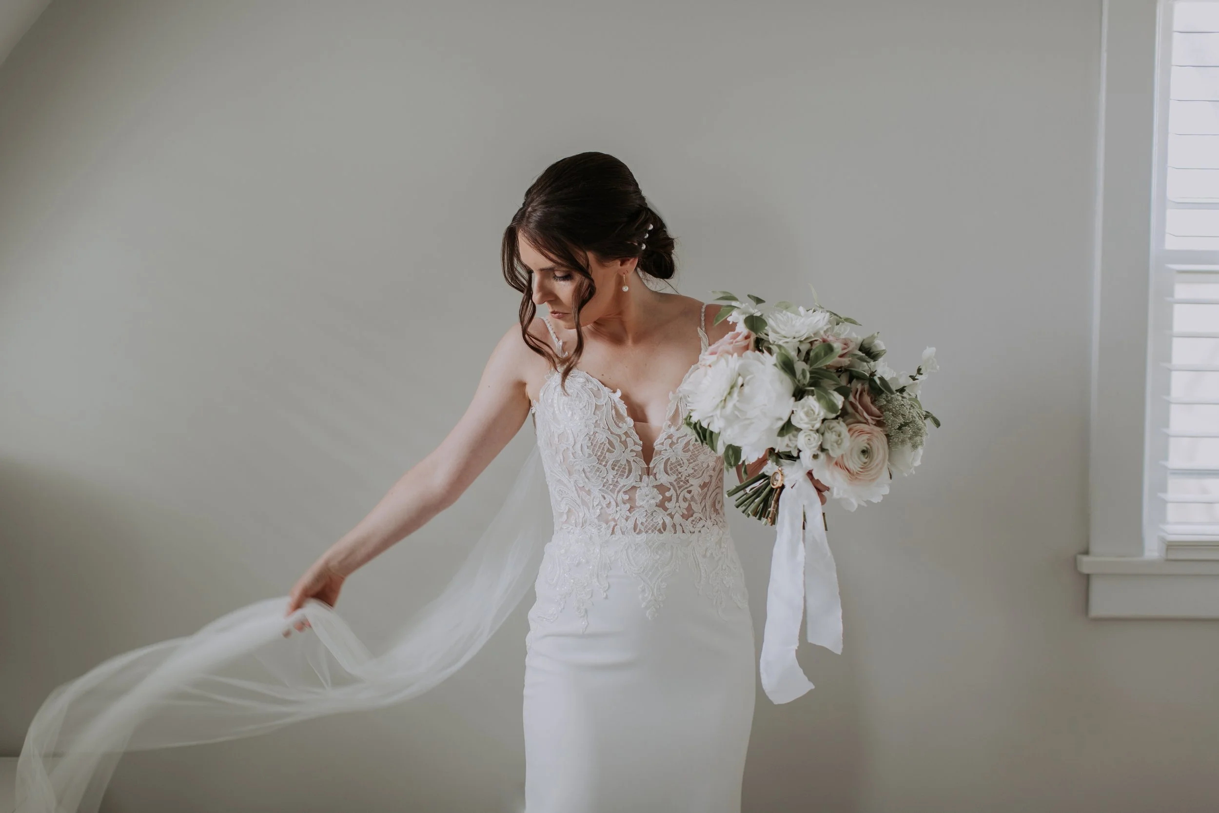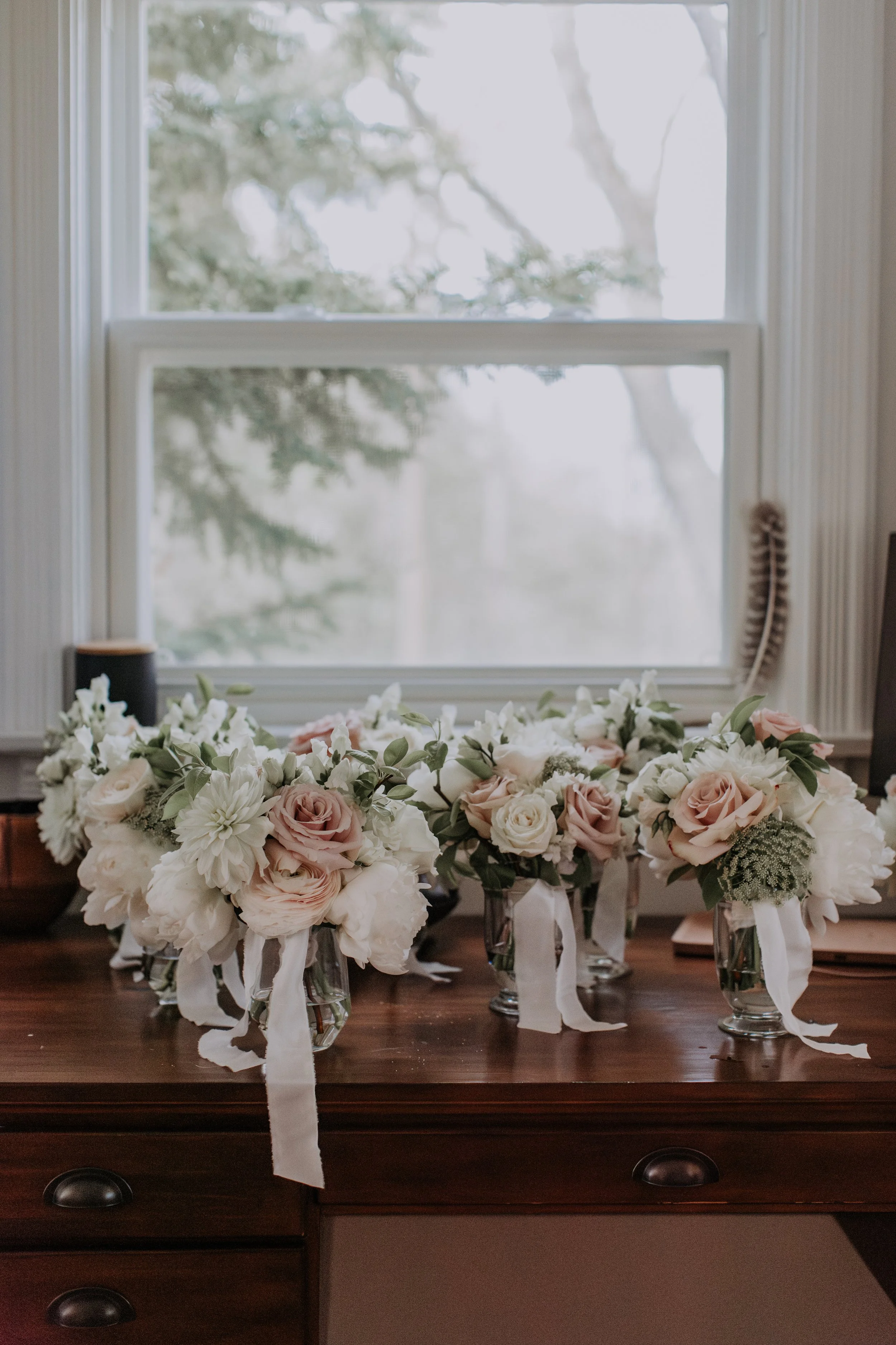 The wedding took place in the throes of cherry blossoms at Cherry Ave Farms, a perfect Spring backdrop. Florals pulled from the surrounding colour palette by Full Bloom Florals. Decor from Boutiquel Linen Rentals and stationery done by the bride’s sister.